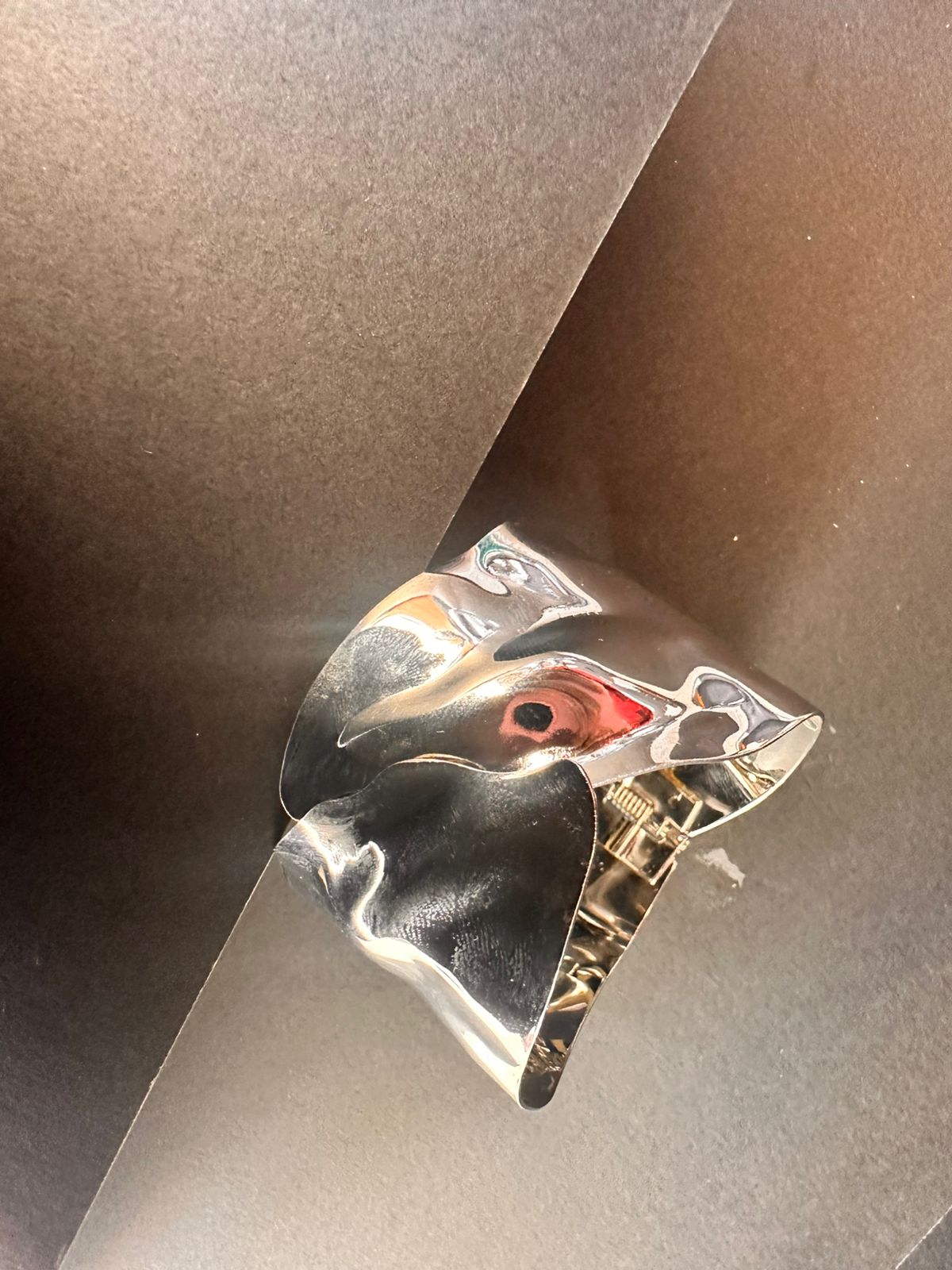 Bold and artistic, this silver-tone cuff bracelet features a sculpted wave design with a mirror-like shine. Its fluid form and contemporary finish make it the perfect statement piece to elevate both casual and evening looks. Designed for those who love minimal yet striking accessories