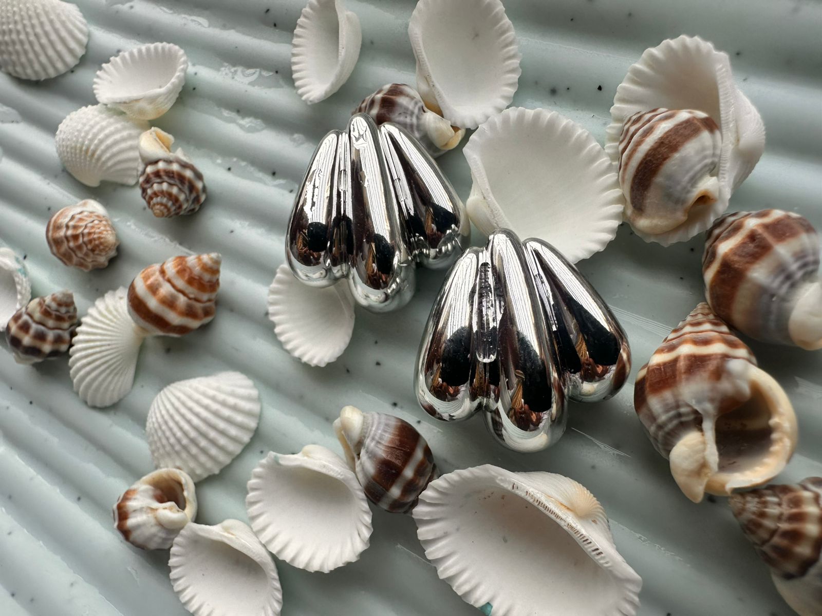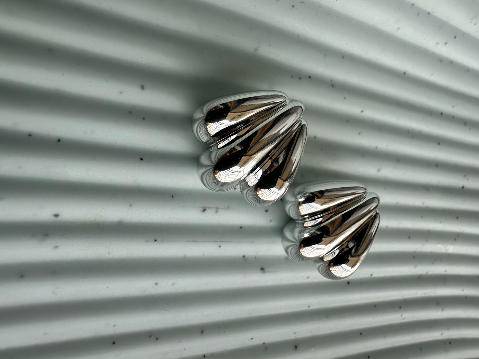 With their layered, shell-like ripple design and mirror-finish silver tone, these dome studs bring an elegant yet futuristic vibe—perfect for bold everyday glam.