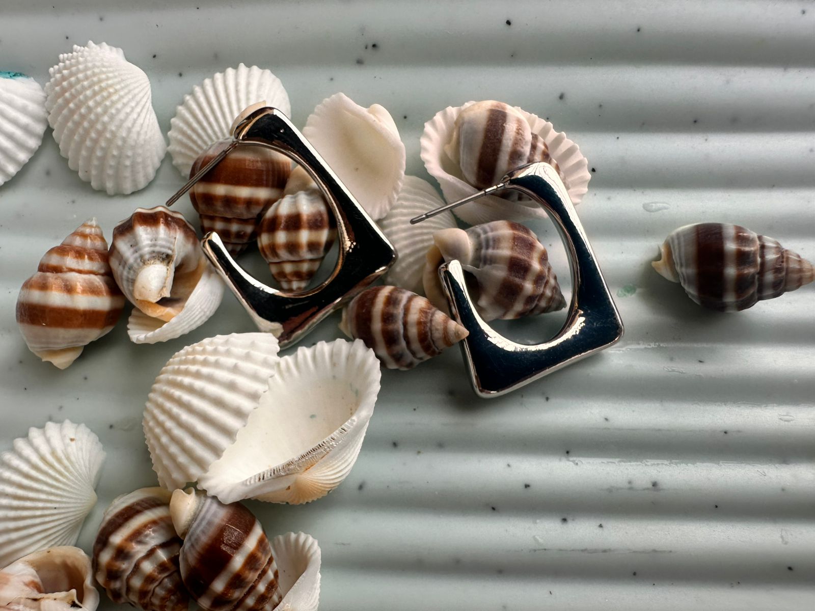 Sculpted Square Silver Hoops